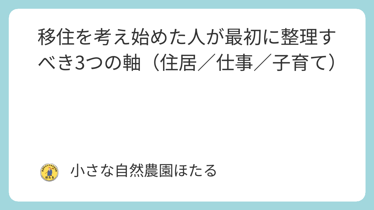 移住を考え始めた人が最初に整理すべき3つの軸(住居/仕事/子育て)